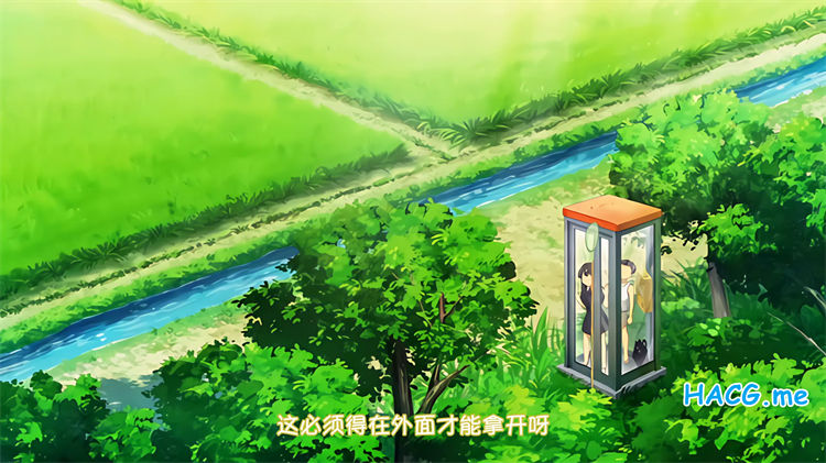 ヨシは虫取り網とカゴを持ち山道を歩いていると電話BOX内に見慣れない女の子がいることに気づく、女の子もこっちを見ているヨシに気づき声を掛けてくる。